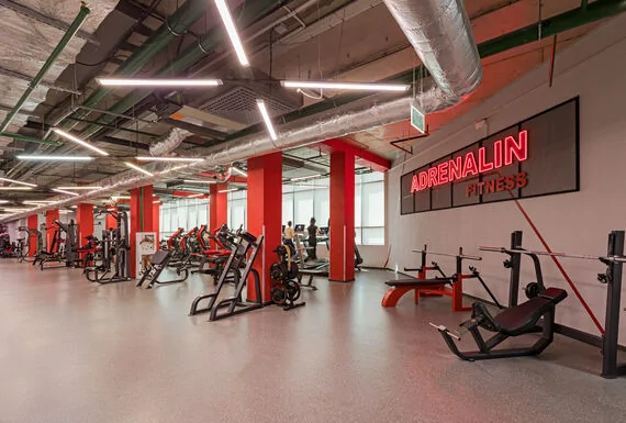 В Адреналин на 4-м этаже ТРЦ Galileo на площади 750м2 к услугам посетителей: тренажерный зал, оснащенный современным профессиональным оборудованием DHZ fitness, кардиозона из 12 машин, просторный зал группового фитнеса, профессиональный тренерский состав, а также душевые и раздевалки, оборудованные по стандартам сети Адреналин.